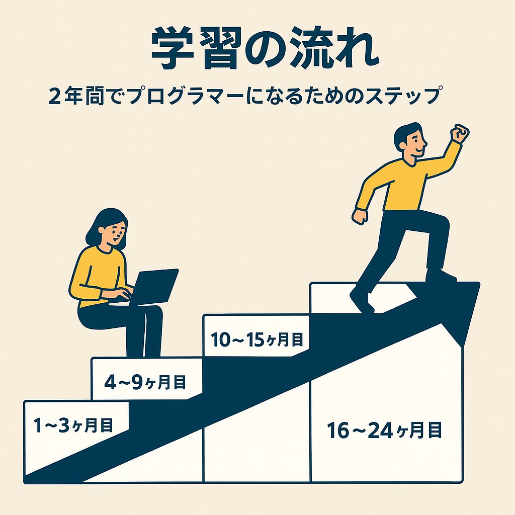 学習開始 → スキル習得 → ポートフォリオ作成 → 就職活動 → 定着支援