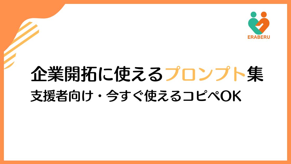 ※本プロンプト集は就労移行支援事業所の業務効率化をサポートすることを目的としています。生成されたコンテンツの使用は自己責任でお願いします。企業情報の取り扱いには十分注意し、各事業所の規定を遵守してください。